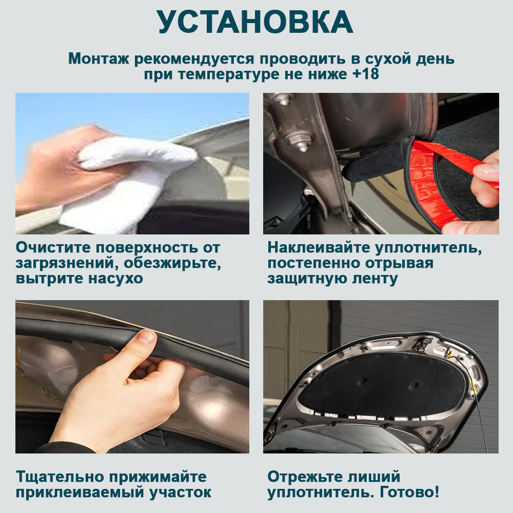 Универсальный D-образный уплотнитель защищает от пыли, грязи и воды, в том числе и моторный отсек, улучшает шумоизоляцию от двигателя. Изготовлен из высококачественного мягкого EPDM-каучука.