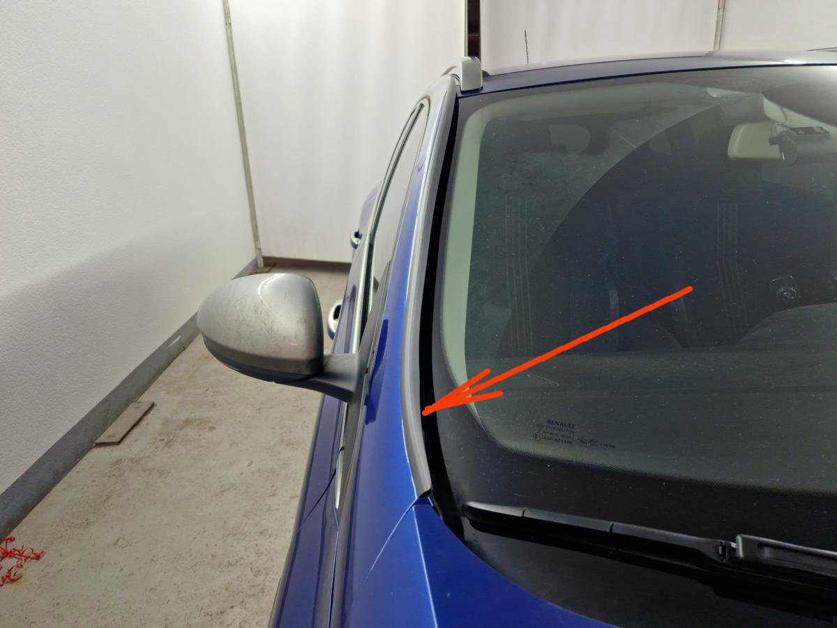 Маленький бортик вставить под уплотнитель лобового стекла и постепенно поднимать вверх до полной установки. При необходимости поддеть уплотнитель острым предметам (отвёрткой).