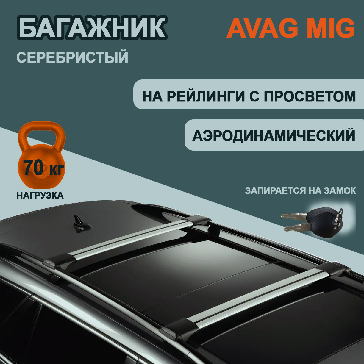 • Багажник на рейлинги AVAG  MIG 55-R   серебристый