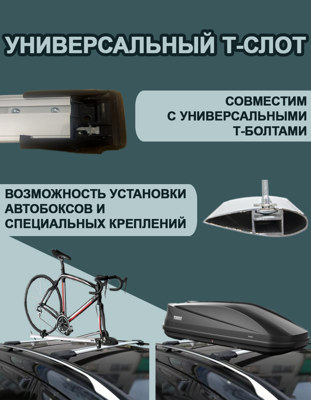 • Универсальный Т-слот – для установки автобоксов и других приспособлений для перевозки грузов;