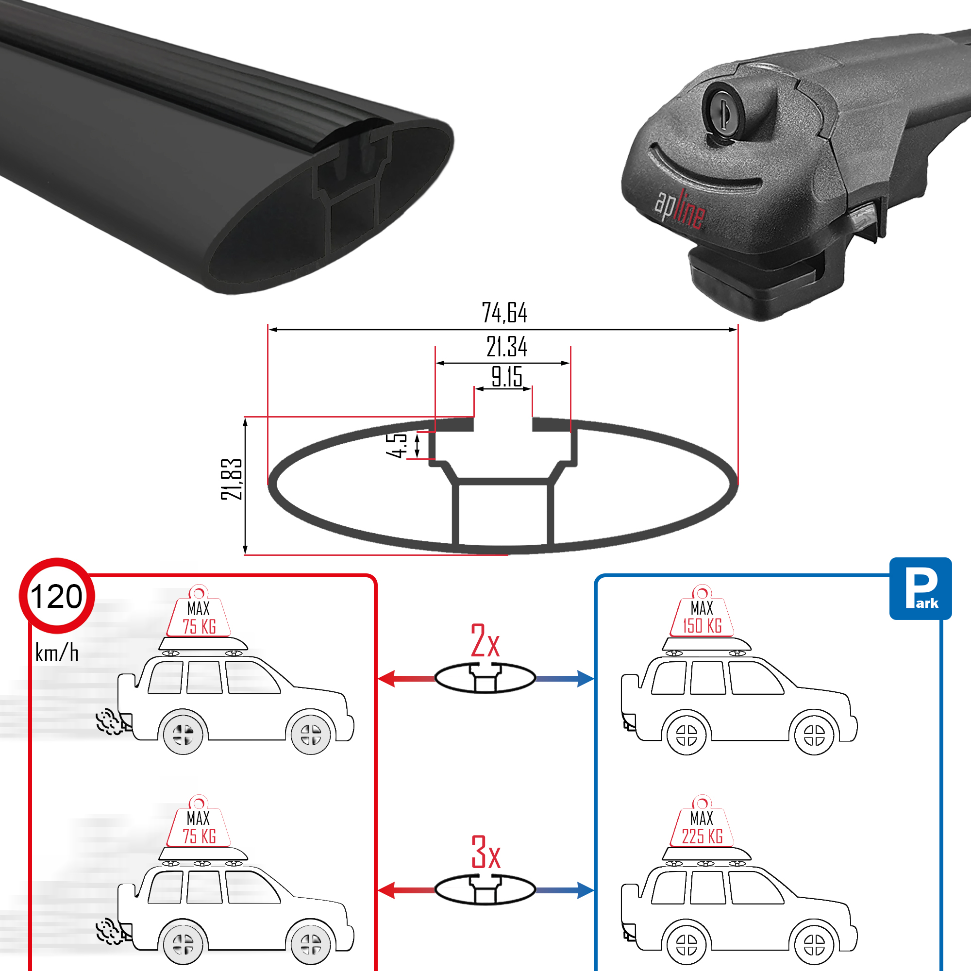 В припаркованном транспортном средстве максимальный вес груза увеличивается до 150 кг, что позволяет использовать багажник Apline Ace 1 для размещения более тяжелых предметов, когда автомобиль находится на стоянке.
