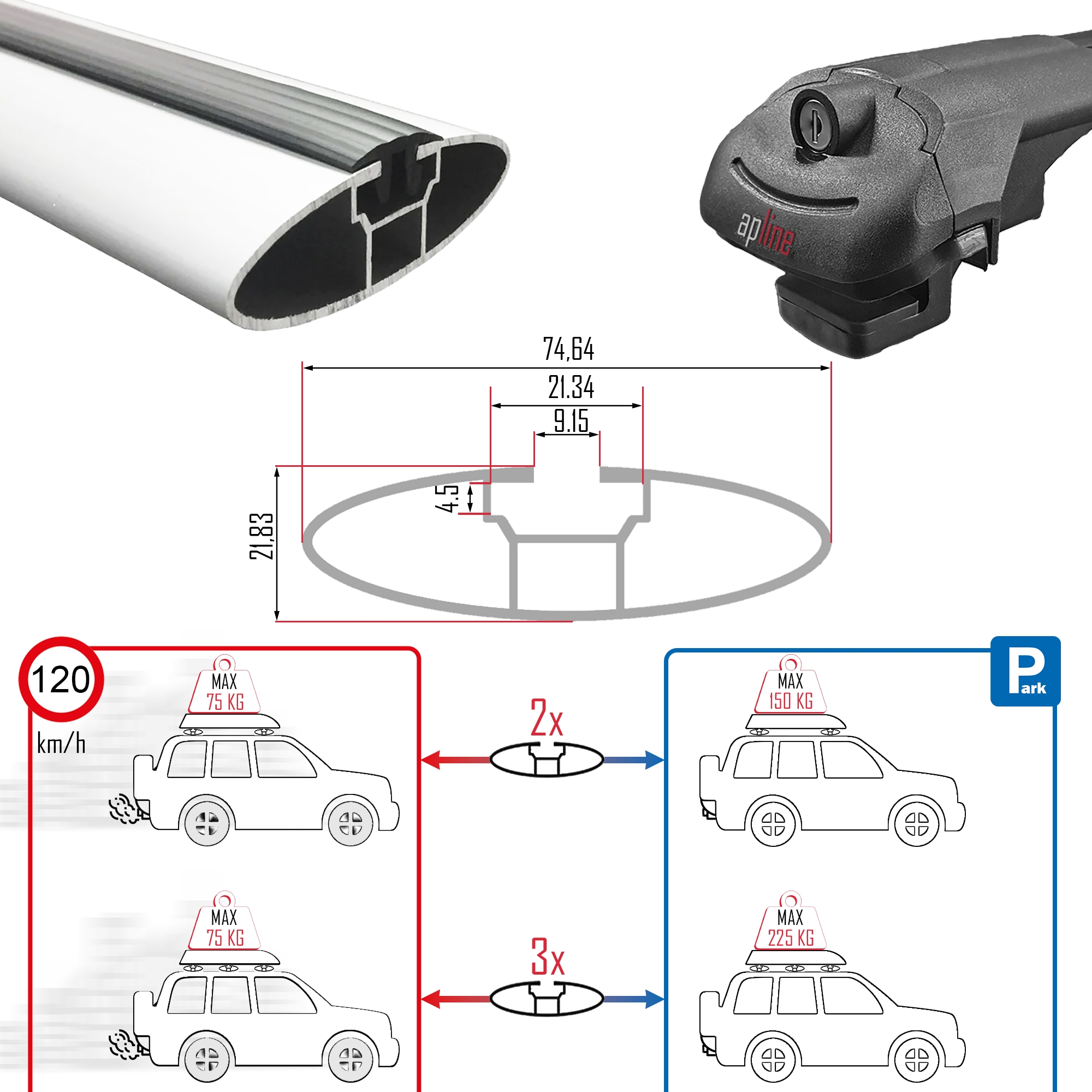 Apline Ace 1 идеально подходит для автомобилей со стандартными рейлингами (между рейлингом и крышей есть расстояние).